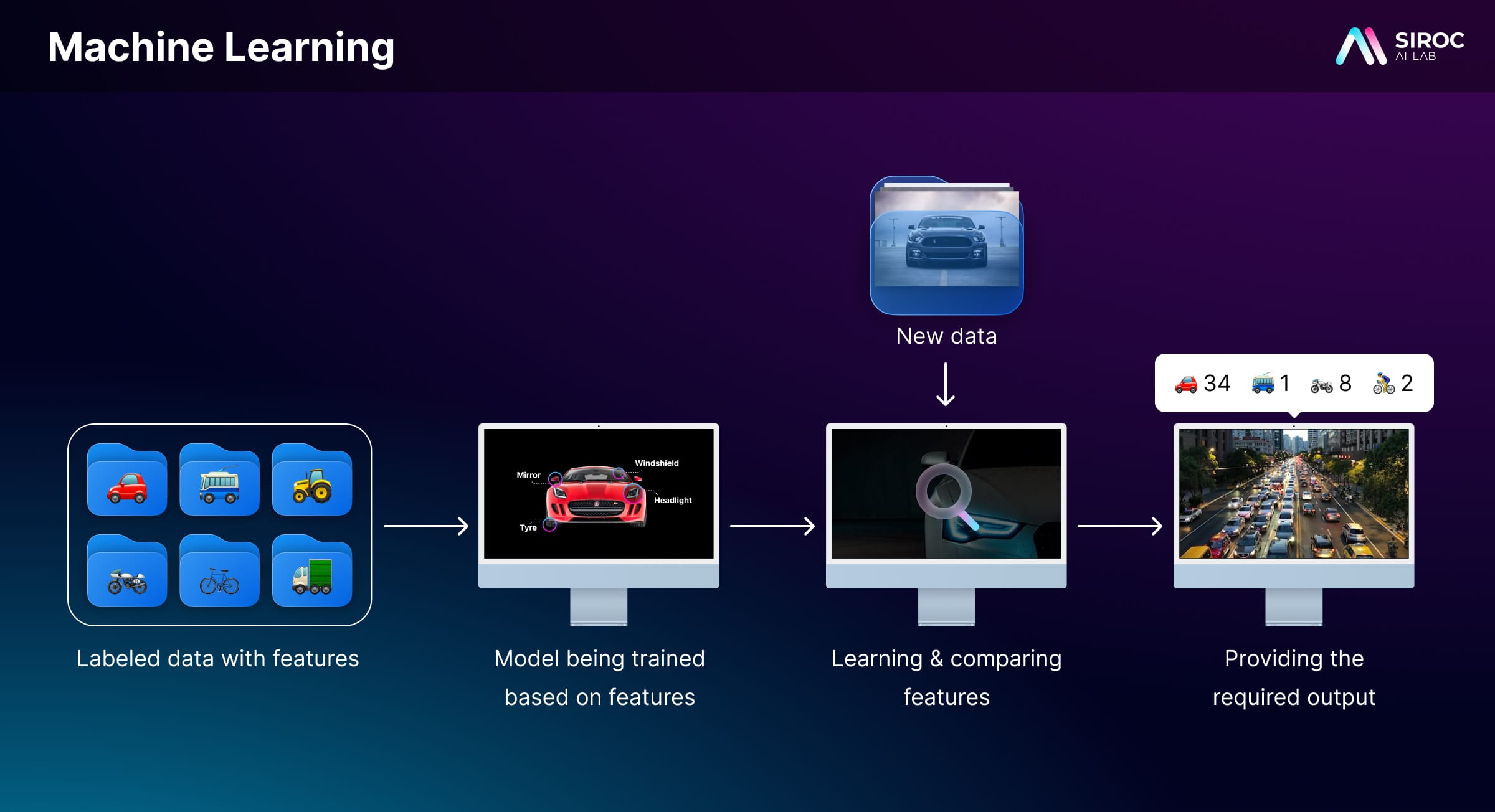 Each of these learning techniques serves different purposes and solves different types of problems. For example, supervised learning requires precise feature identification, which can either be built within the model itself or through a separate process. This learning type is particularly useful when we have labeled data to train the model and want to predict outcomes for new, unseen data.