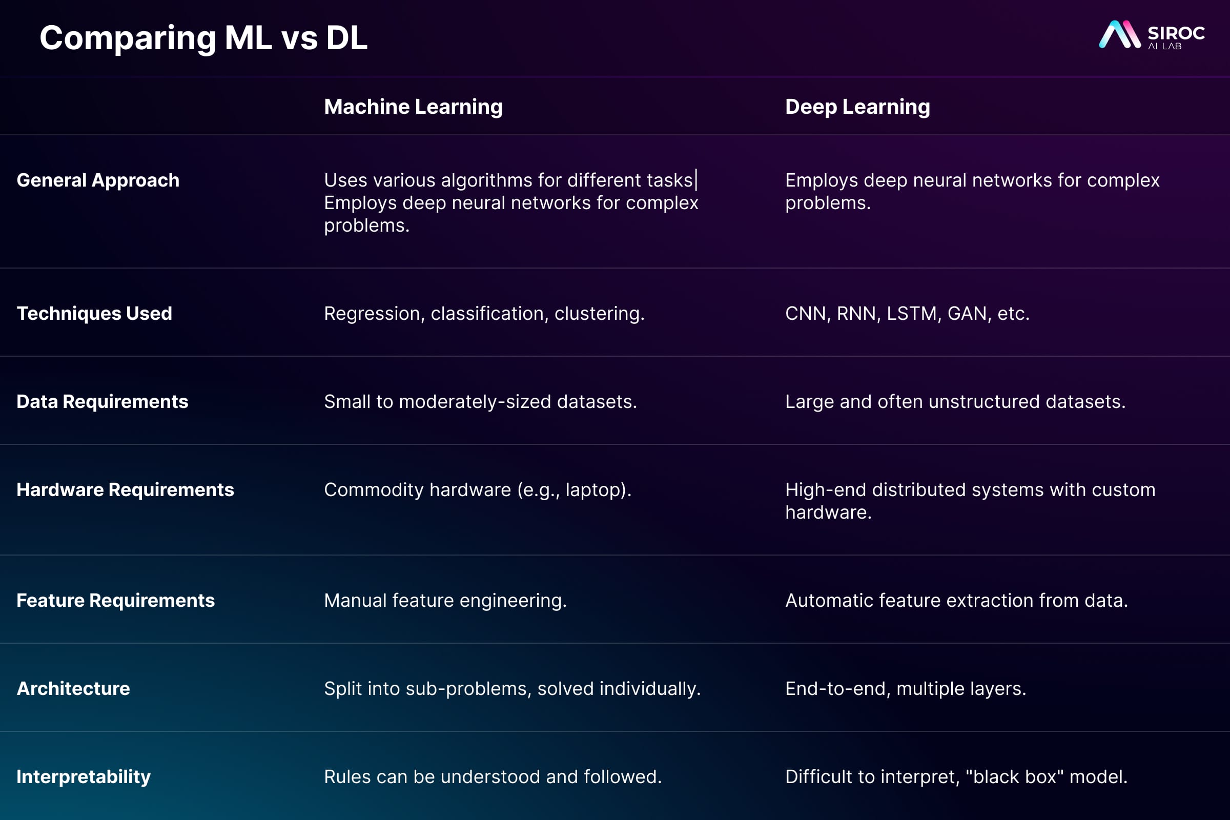 Direct Comparison: ML vs DL